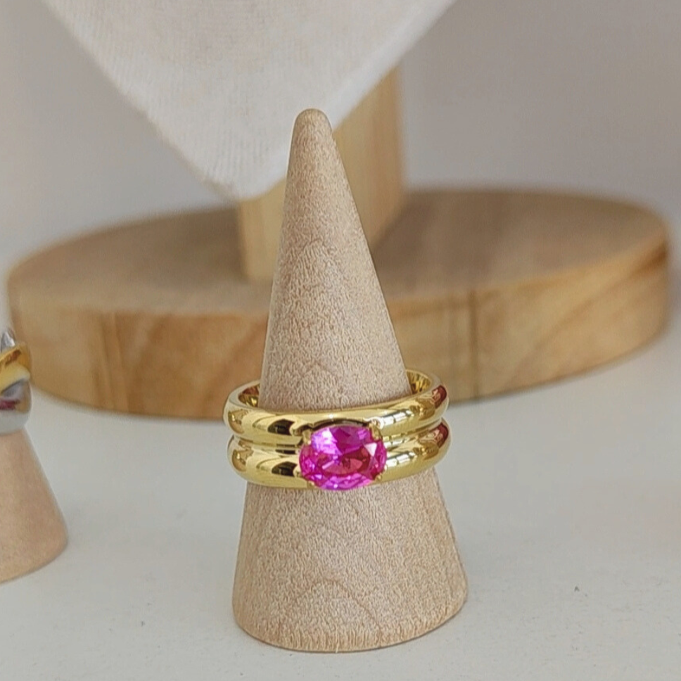 Hermoso anillo Chunky con piedra rosa en acero inoxidable hipoalergénico y resistente al agua . Disponible en No. 7